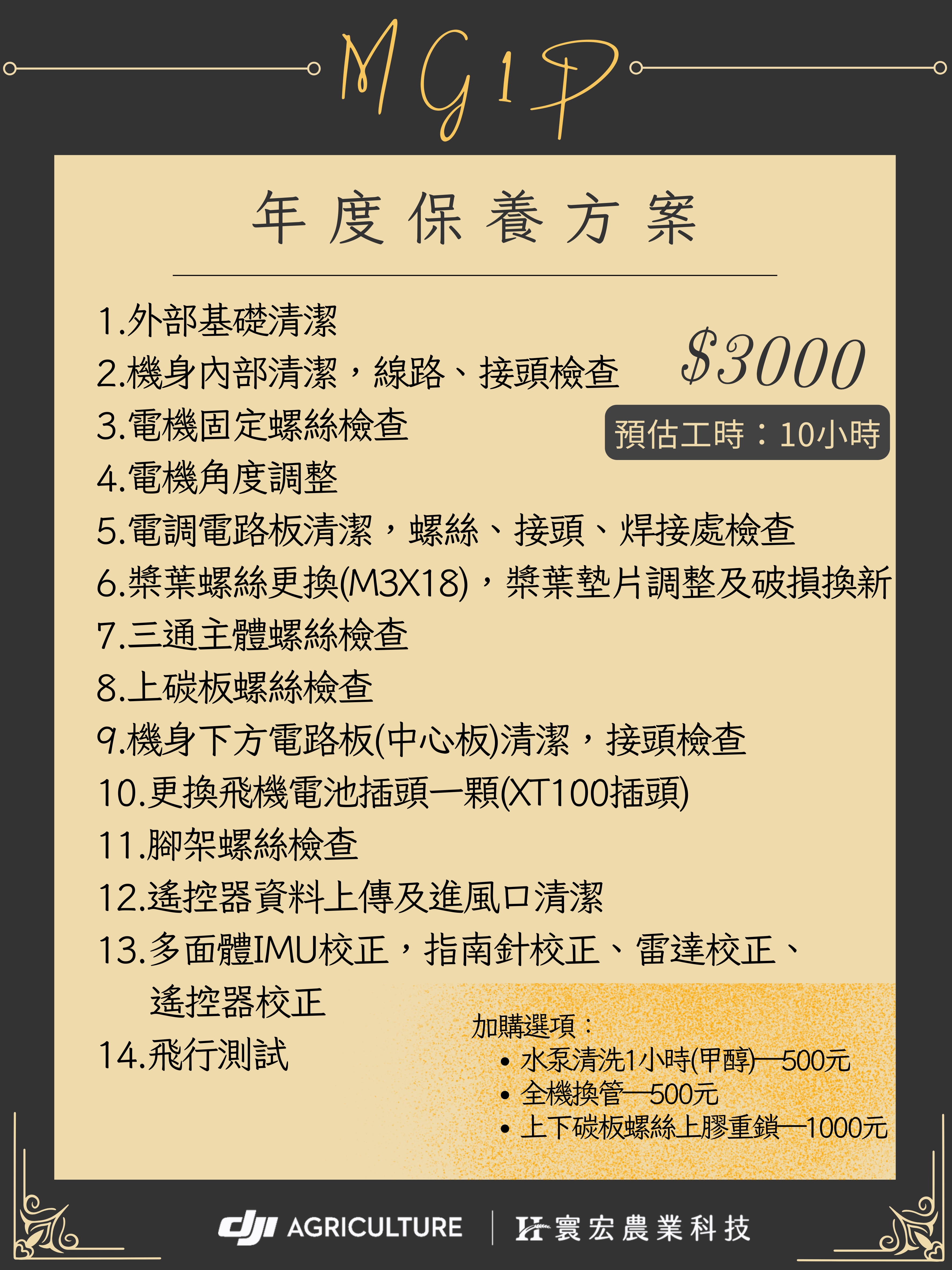 寰宏農業科技深耕台灣多年,係最早引進大疆植保機之代理商。透過無人機產品與農業資材應用,為台灣在農業遇到的問題提供更智慧的解決方案。提供最高的服務品質,現今售後服務不需寄送國外維修,在台灣擁有最多直營據點可提供維修與保養服務,讓您購機使用無後顧之憂。