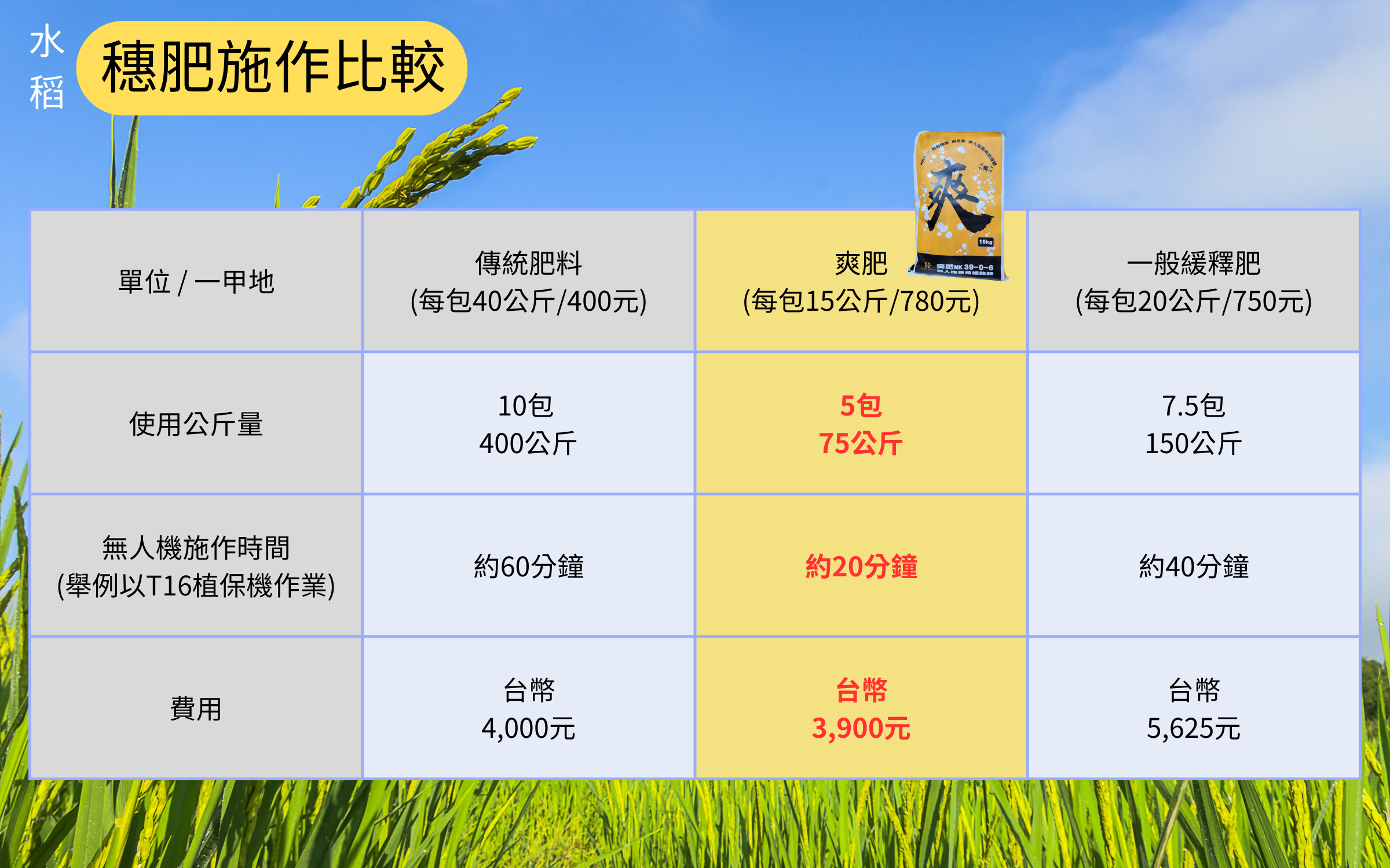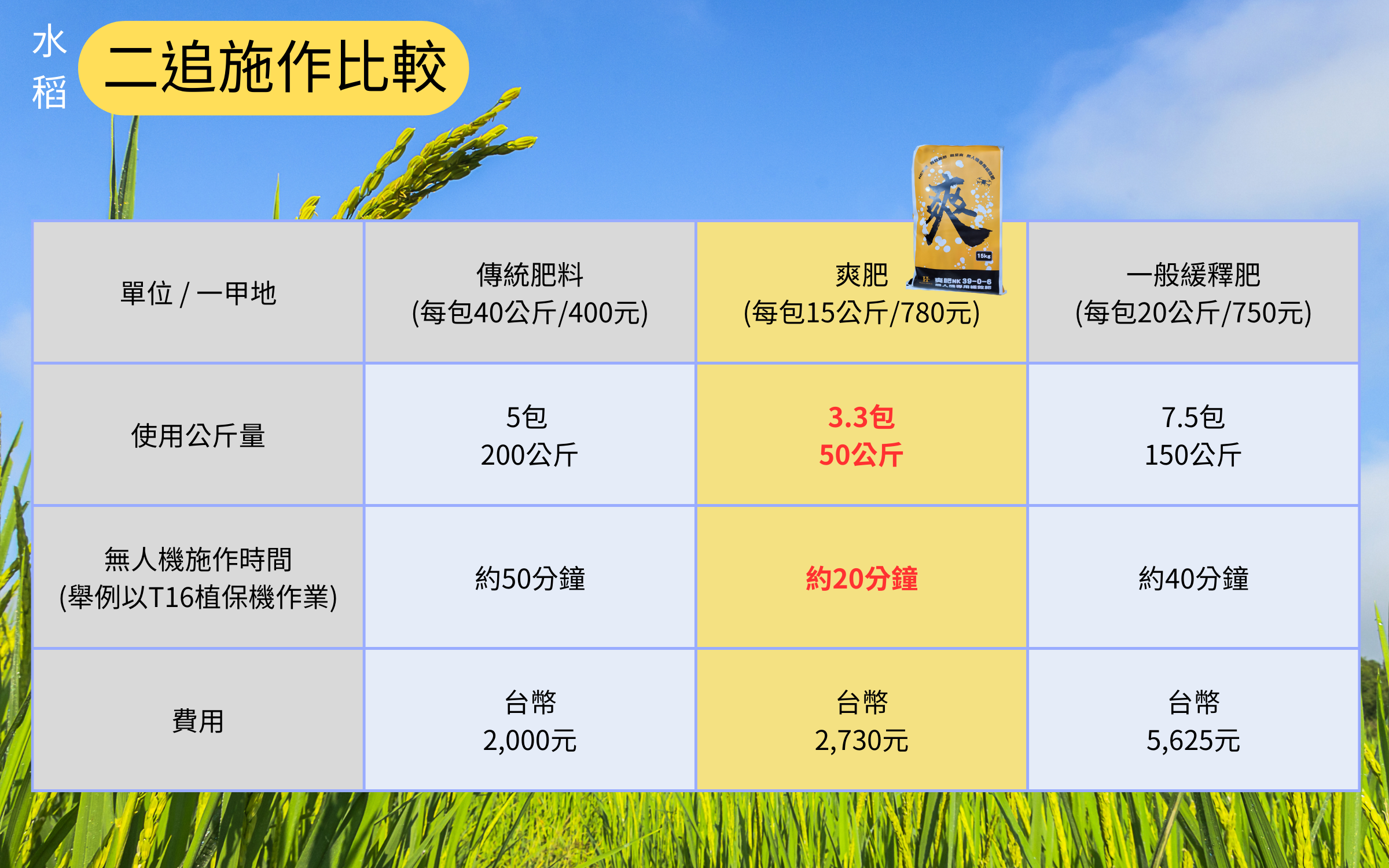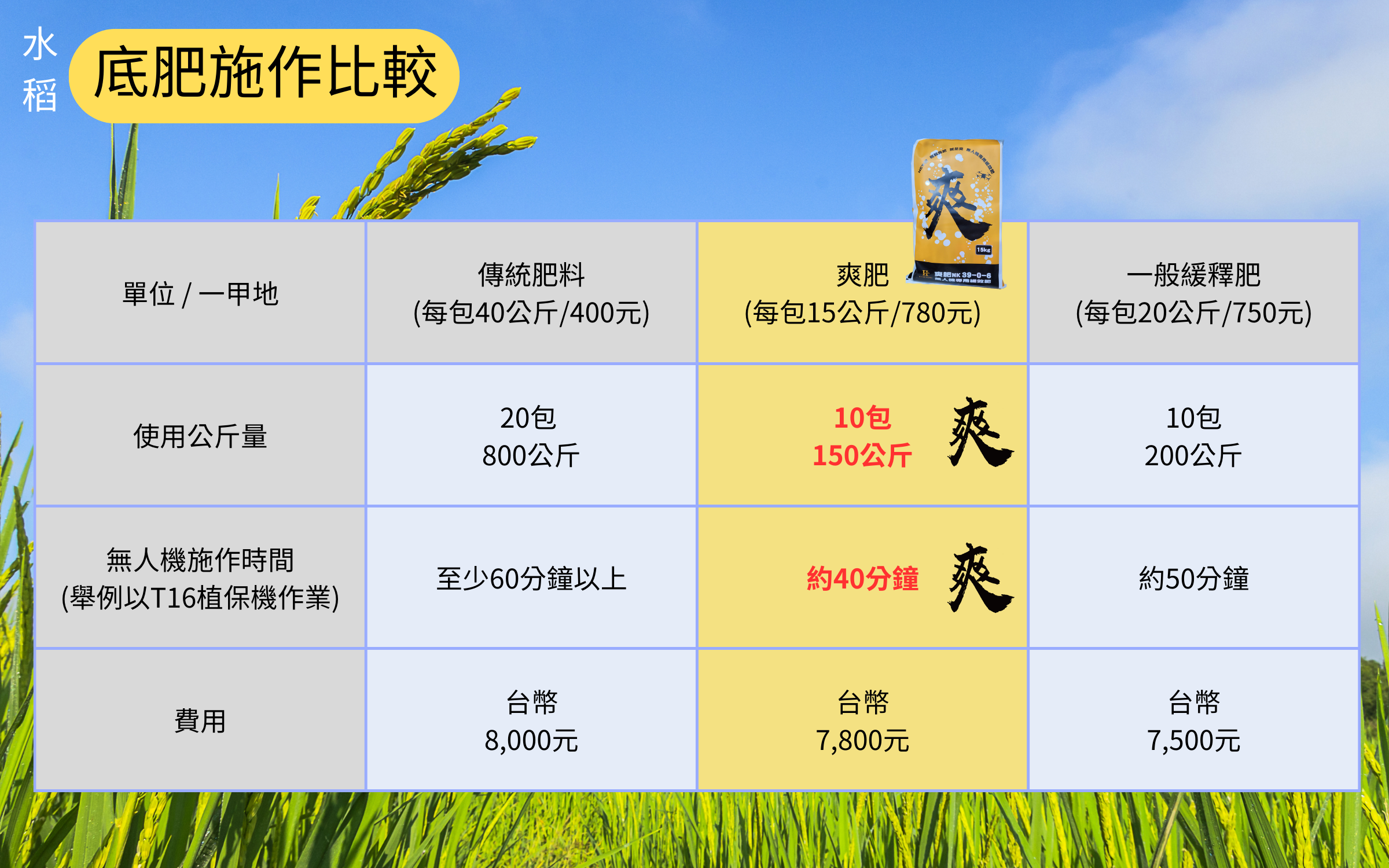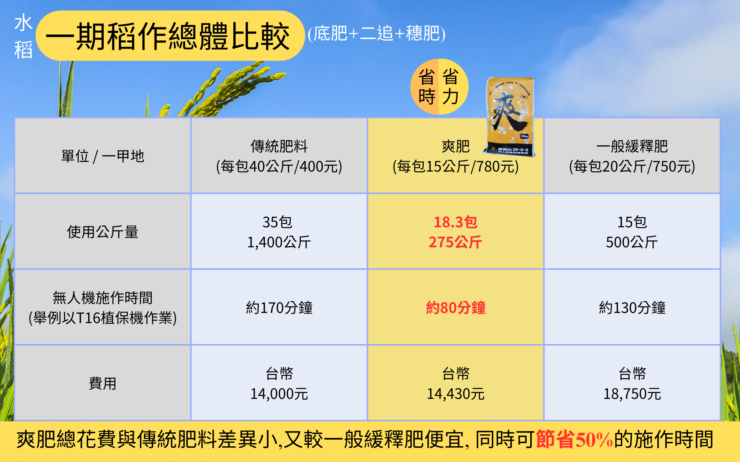 用量省且可產生適當的肥效