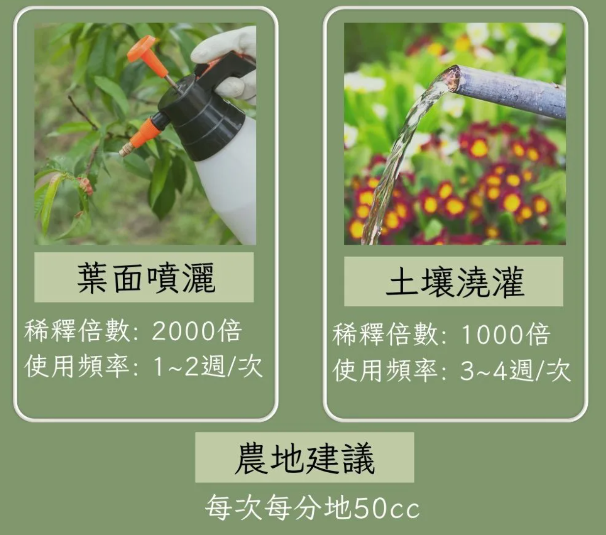 ※鹼性土壤澆灌易有副作用,施用時請斟酌小心使用。